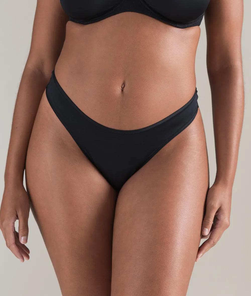 Le string Nudea Second Skin Stretch The Dipped Thong noir allie un minimalisme élégant à un confort sans coutures.