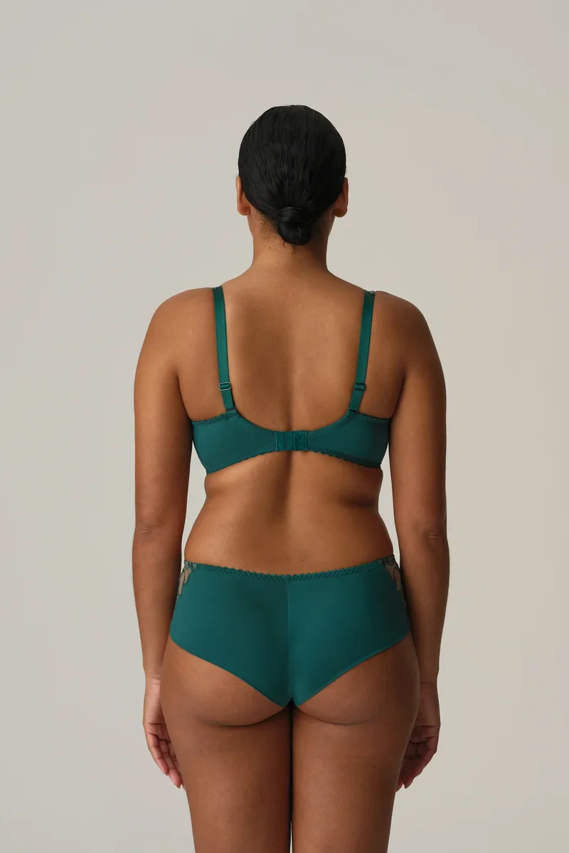 Ce soutien-gorge rehausse et galbe joliment la poitrine tout en laissant le décolleté ouvert pour une polyvalence optimale sous les hauts décolletés. La broderie Jasper Green apporte une touche moderne et dynamique. Le bas du bonnet lisse assure une couverture douce et une silhouette épurée. Idéal pour les grandes occasions ou simplement pour rehausser votre lingerie au quotidien.