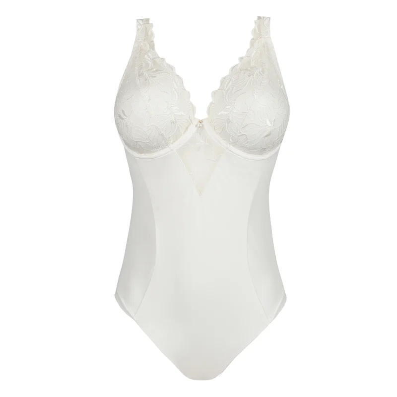 Ce body plongeant sublime la silhouette grâce à ses empiècements galbants et ses bonnets à armatures offrant un bon maintien. La microfibre douce lisse la taille, tandis que le tulle brodé transparent lui confère un charme délicat. Son décolleté profond est idéal sous les vêtements à col en V, offrant une finition sans coutures et une silhouette affirmée. Parfait pour les soirées ou les occasions où structure et sophistication se marient.