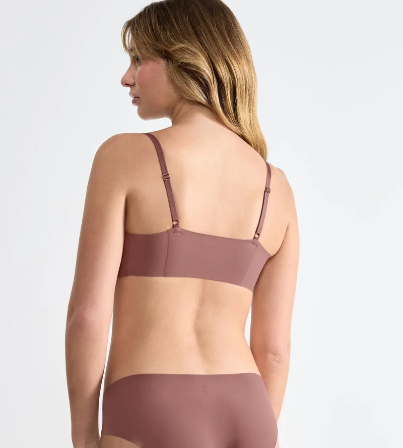 Une brassière sans armatures aux tons chauds, offrant le confort d’une microfibre douce et un galbe subtil.