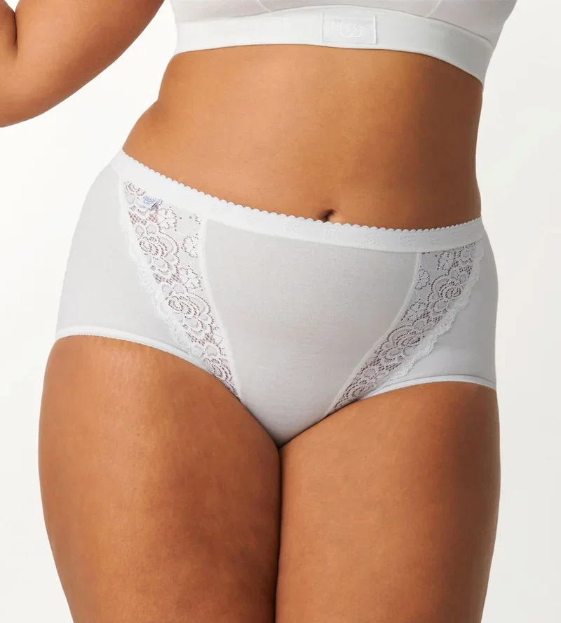 Une culotte blanche taille haute ornée d’élégants détails en dentelle et offrant une silhouette naturellement lissante.