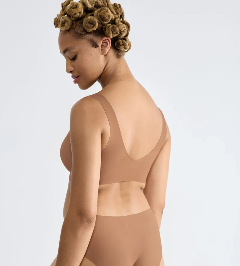 Une brassière aux tons neutres et chauds offrant un confort ultra-léger et une silhouette lisse et sans armatures.
