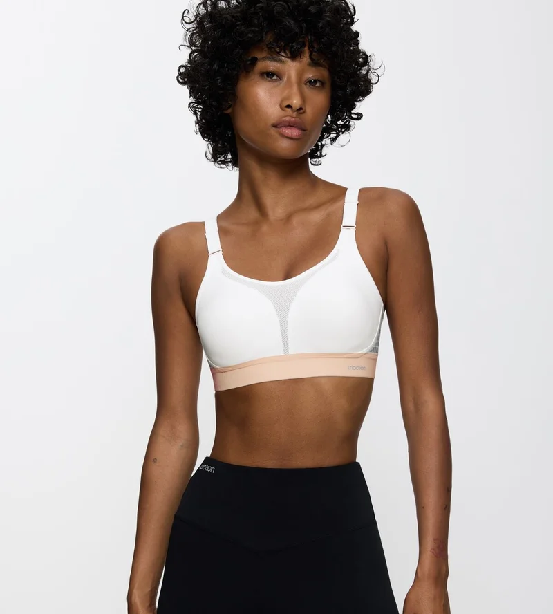 Idéale pour les sports à fort impact, cette brassière blanche Triaction allie un maintien ferme à un confort optimal grâce à sa gestion de l’humidité.