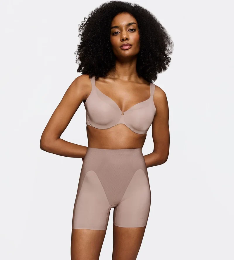 Un short gainant taille haute offrant un maintien ferme et un fini doux aux tons neutres.