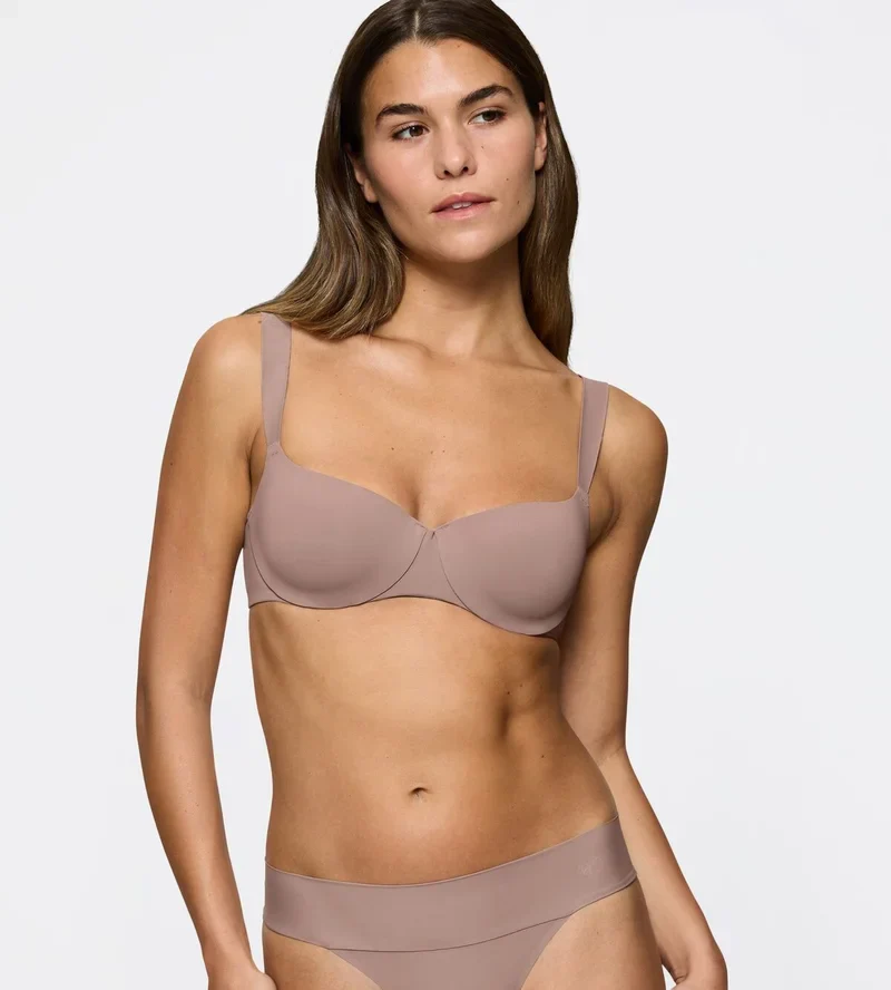 Un soutien-gorge balconnet transparent dans une riche teinte neutre pour un usage quotidien raffiné.