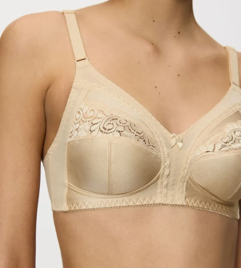 Le soutien-gorge Triumph Claudette 3 parties à bonnets emboîtants en coloris Teint offre un maintien raffiné au quotidien, un confort sans coutures et une forme élégante.