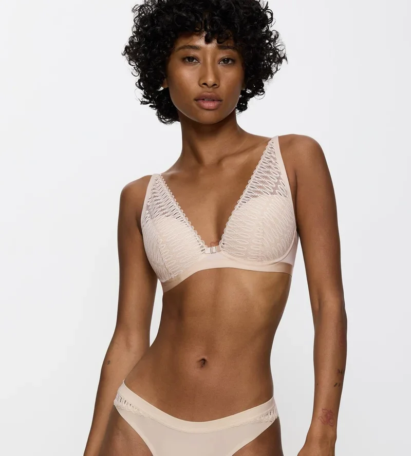 Un soutien-gorge plongeant raffiné offrant un maintien discret et une silhouette féminine et harmonieuse.