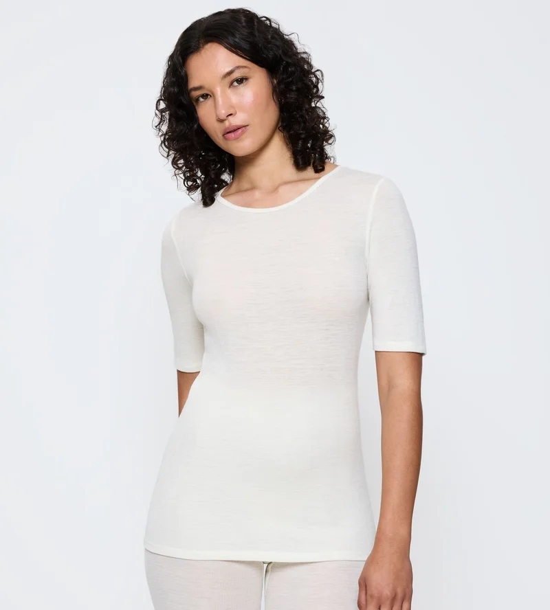 Triumph – Top à manches courtes Beauty Layers en laine écru blanc