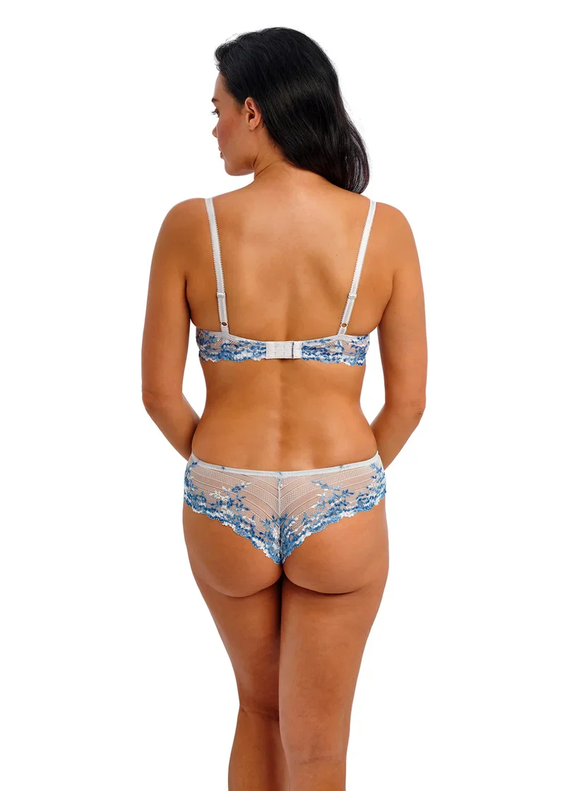 Ce tanga allie une dentelle luxueuse à un empiècement dos discret et à une finition lisse sous les vêtements. Sa teinte Micro Chip est subtile et raffinée, idéale pour être portée au quotidien avec de la lingerie fine.