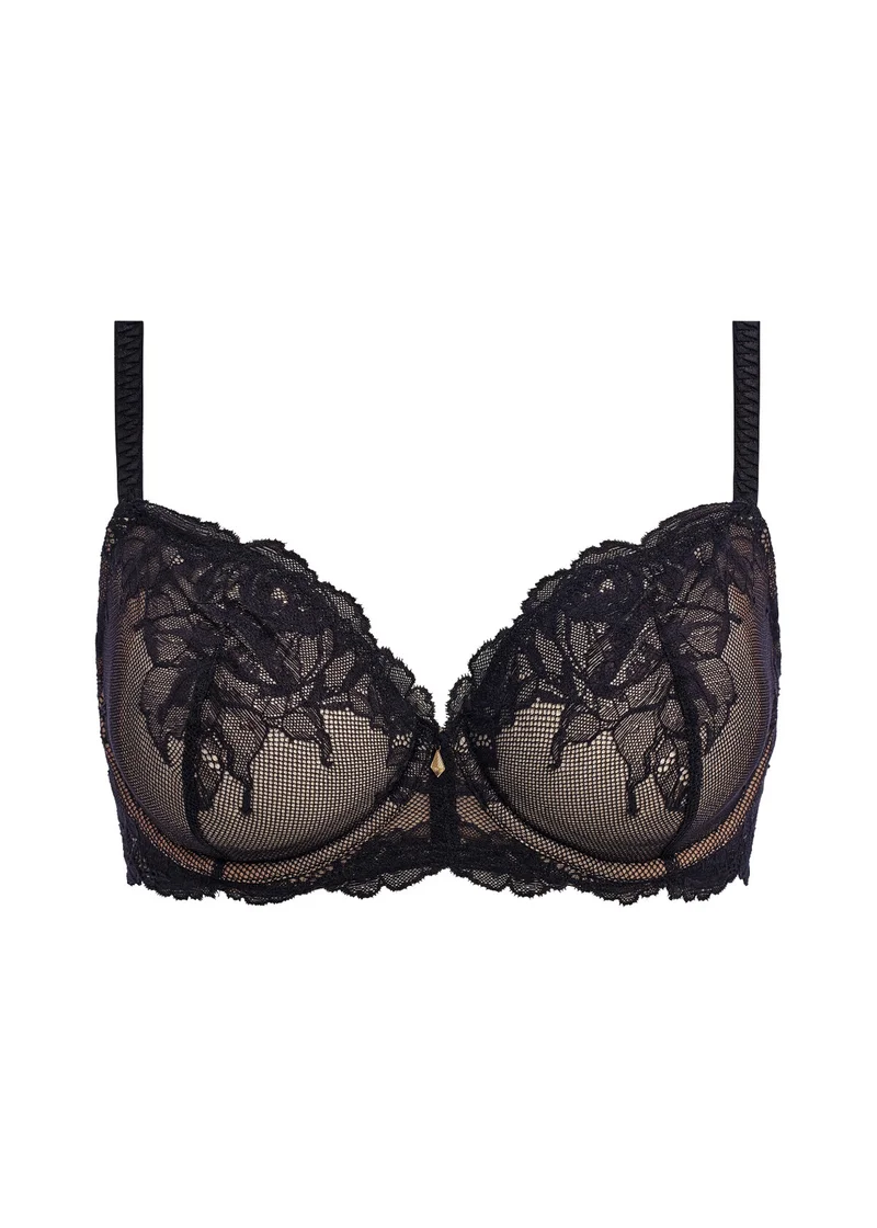 Le soutien-gorge à armatures Vivid Attraction noir allie un design audacieux à un maintien fiable. Ses bonnets en dentelle multi-panneaux et son soutien latéral galbent et rehaussent la poitrine, tandis que sa luxueuse dentelle florale et ses détails transparents lui confèrent une allure raffinée. Les bretelles réglables et les fermetures sécurisées garantissent un confort optimal tout au long de la journée, ce qui le rend idéal pour une soirée élégante ou comme base parfaite au quotidien.